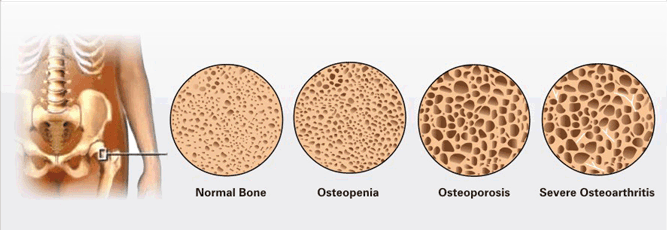 Osteopenia is a term used when our bones are weaker and have a lower bone density than normal, however not low enough to be osteoporotic (Osteoporosis Australia). Where as, Osteoporosis is the loss of bone thickness or mass, where bones become more fragile and weak and are at a higher risk of fracturing (Osteoporosis Australia).
