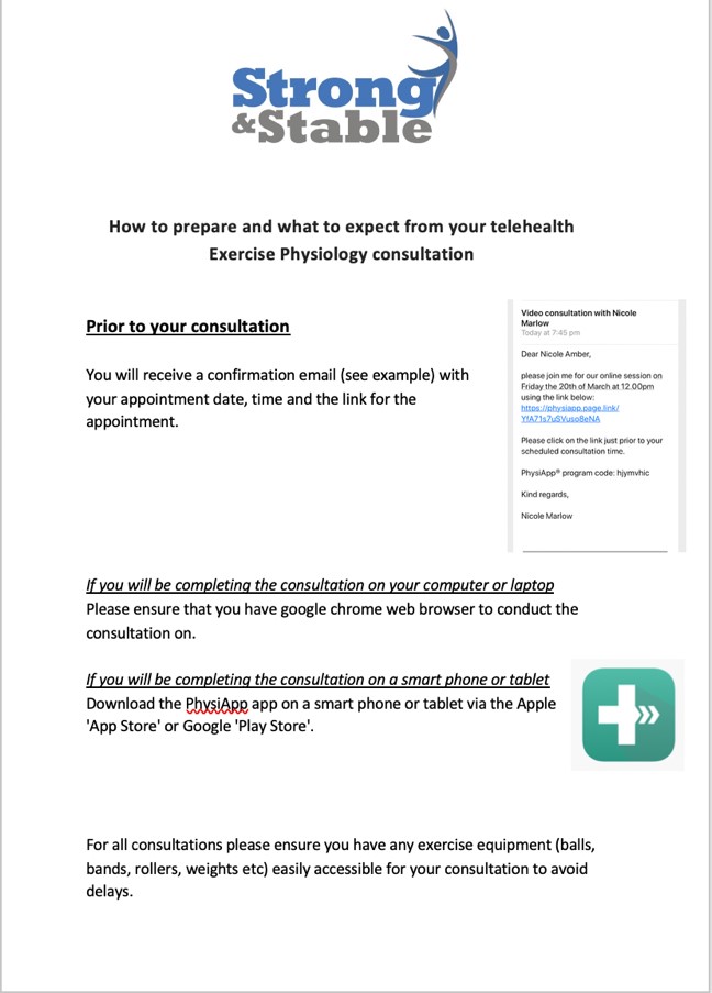 Strong & Stable is excited to announce that will be now be offering Exercise Physiology Telehealth consultations to all our clients.